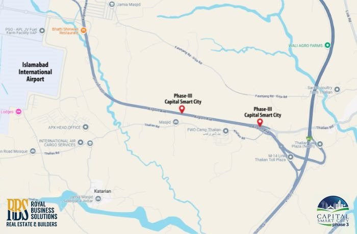 Situated between two key landmarks, Islamabad International Airport and the Thalian Toll Plaza (M-14). This location offers unmatched convenience and strong potential for both residential and commercial investments.