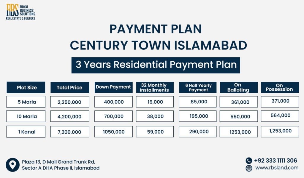 Century Town Islamabad Payment Plan
