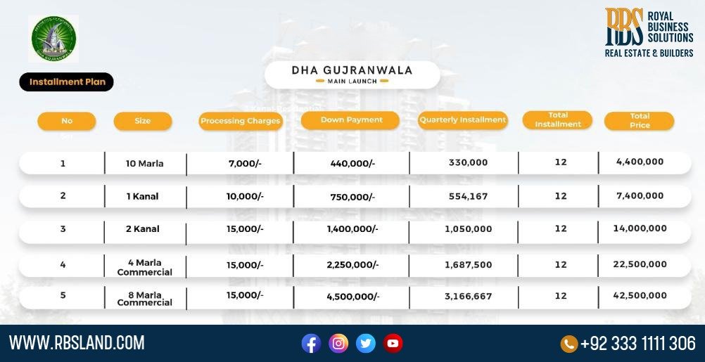 Moreover, there are various commercial plots available for sale. It includes 160 4-Marla plots for sale in DHA Gujranwala and 72 8-Marla plots for sale in DHA Gujranwala.