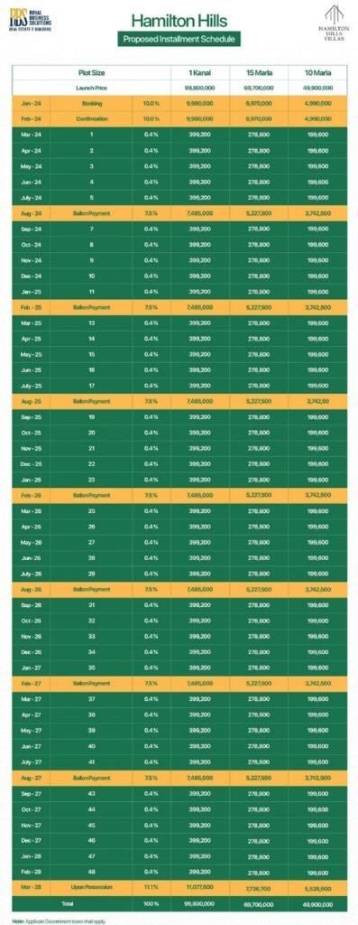 However, the management has unveiled the payment plan for Hamilton Hills Villas, and villa bookings have already commenced. The developers prioritize sustainable and eco-friendly approaches in constructing and designing these villas, reflecting their commitment to environmentally conscious practices.